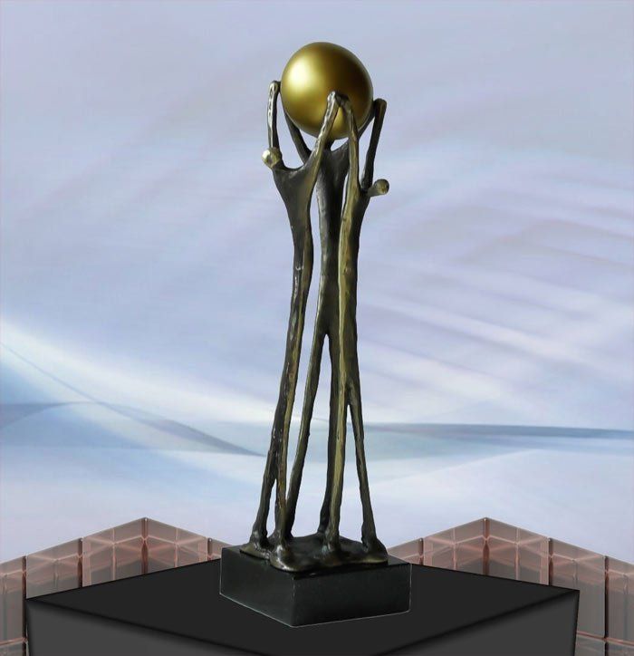 Ein besonderes Kunstwerk für Dynamik und Innovation ist die Skulptur „Bahnbrechende Visionen“. Drei Protagonisten tragen herausragende Ideen in ihren Köpfen und bringen diese gemeinsam für ihr Unternehmen zum Erfolg. Ein symbolisches Weihnachtsgeschenk für Kunden, das in einer Geschenkverpackung geliefert wird.